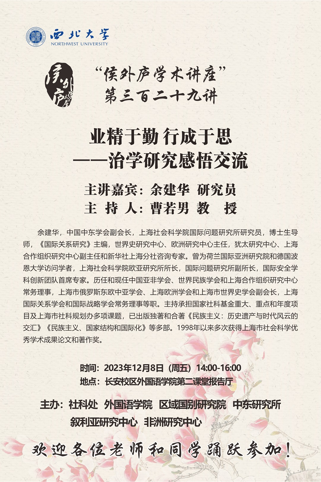 329th Hou Wailu Academic Lecture in SFL, NWU