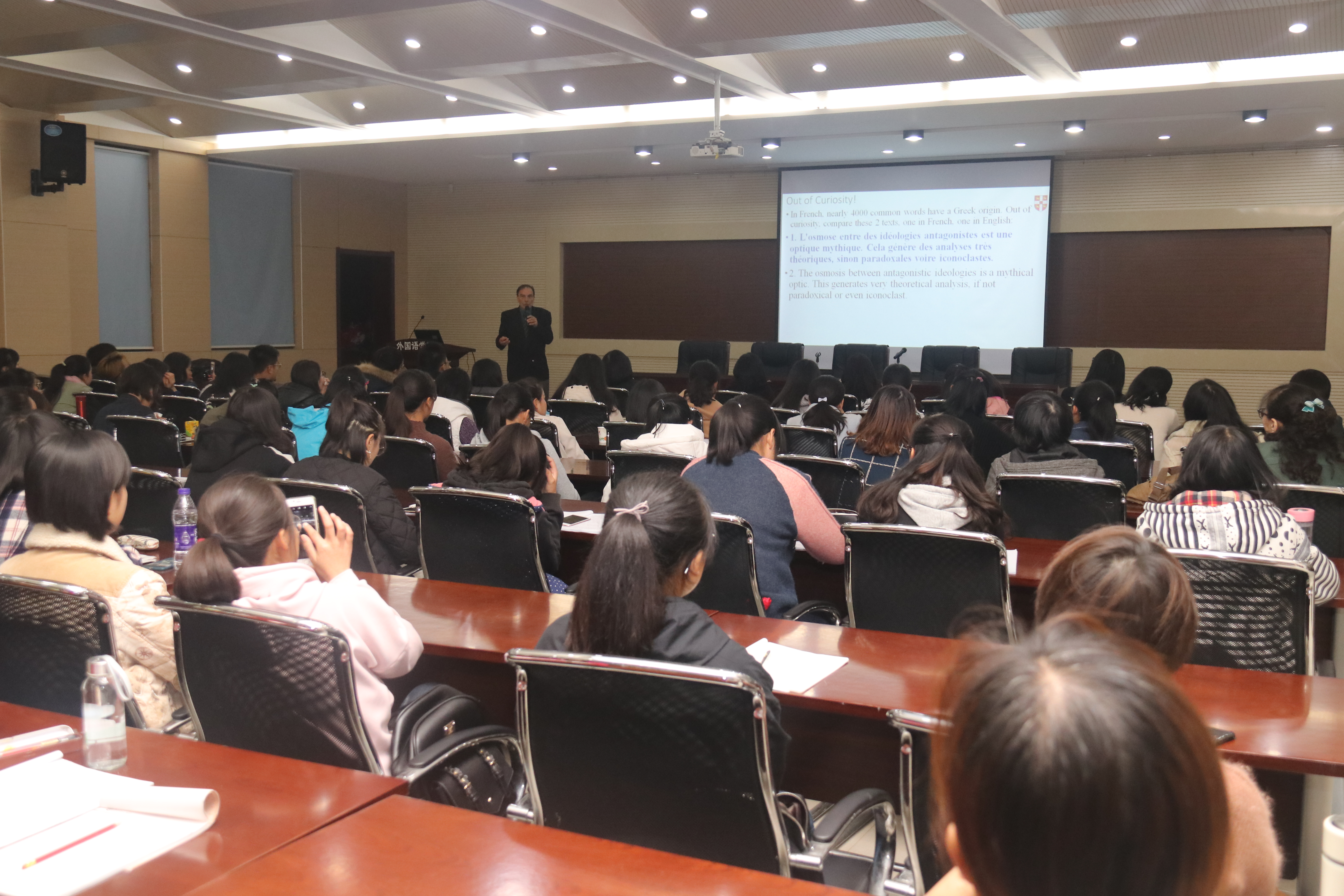 2017年11月1日下午, 世界著名语言文化专家,剑桥大学Casimir D’Angelo 教授,为我院师生做了题为“ 剑桥教授中国行”的讲座。讲座于外国语学院高级口译模拟实验室举行,由外国语学院科研副院长任海棠教授主持。