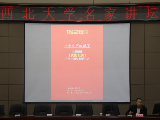 正值中国人民志愿军抗美援朝出国作战七十周年,2020年11月11日下午,著名音乐家、中国延安文艺学会文创产业中心主任、中国国际友人研究会常任理事、中国国际工和运动执行委员、中国交响乐艺术季中心副主任、西北大学客座教授、人民音乐家刘炽之子刘欣欣教授受邀做客我校“名家讲坛”,为我校师生作了题为“共和国经典:‘一条大河’诞生记”的专题讲座,本次讲座由我校外国语学院院长胡宗锋教授主持,百名师生参会。