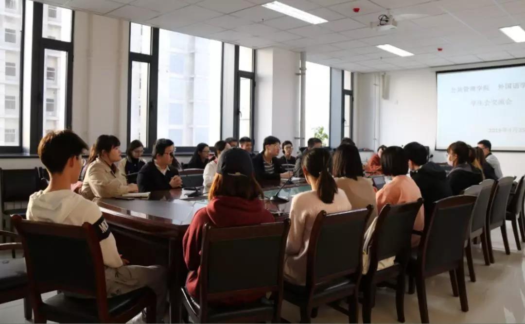 为增进公共管理学院与我院学生会之间的友谊,增加学生会成员内部的整体凝聚力,促进两院友好往来。2019年3月25日下午6点,公共管理学院苏林老师和外国语学院赵明星老师及两院学生会代表在西学楼503教室共同进行了一场令人颇受启迪的学生交流座谈会。