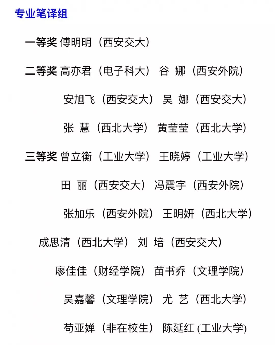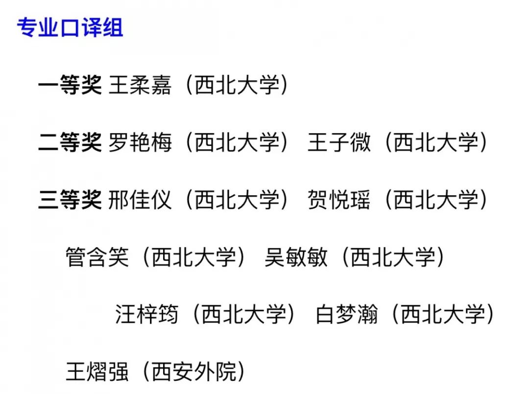 基地成员在此次比赛取得的成绩再次证明了西北大学口笔译训练基地的训练方法和培养方式是行之有效的,当然也离不开团队指导老师的辛勤指导与付出。再次祝贺西北大学口笔译训练基地成员取得佳绩!!