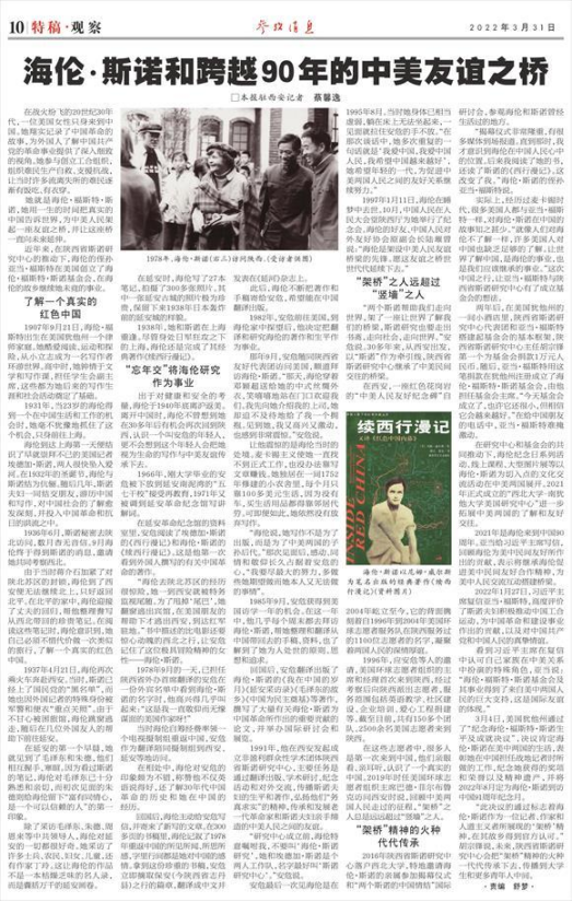 参考消息特稿 | 海伦·斯诺和跨越90年的中美友谊之桥