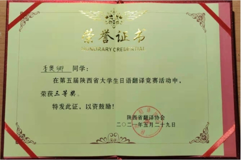 我院学子在“第五届陕西省日语翻译竞赛”中再获佳绩