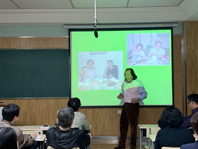 我院胡宗锋教授是陕西师范大学杰出校友,他首先深情地回顾了在陕西师范大学求学成长的经历,回顾了母校教育对他立志学术、投身翻译事业的深刻影响。作为一位著名的学者型翻译家,胡宗锋教授的讲演既有清晰的学术脉络的梳理,又有丰富生动的典型译例。结合自身丰富的中国当代文学英译实践经验,胡宗锋教授以其重点翻译的中国当代著名作家贾平凹作品如《黑氏》《废都》《土门》《贾平凹散文选》等作品中的“文字”背后所包含的浓郁而别致的“文化元素”的翻译策略和处理方法,讲述了从文字到文学、文化和文明之间的内生联系。胡宗锋教授在讲演中不时地总结其翻译经验,呼吁同学们重视母语语言能力的培养,增强民族文化自信,不仅要读万卷书,行万里路,更要接受“仙人”指点,学会向大师学习。胡教授语言幽默风趣、金句迭出,引来听众的阵阵掌声。在答问环节,胡教授耐心解答了大家的疑问,并指出机器翻译不可取代人工翻译,在面对带有地方特色的文化词时,要学会灵活处理,保留中国文化特色,传播中国语言魅力。