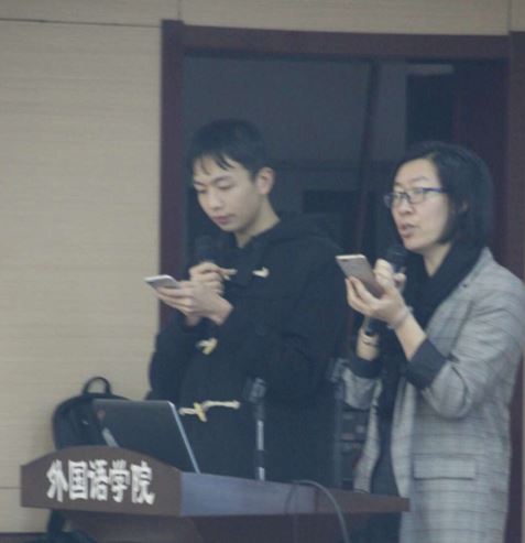 2018年1月12号上午,英语系2017级英语小剧场汇演在四号楼高级口译实验室成功举行。英语系教师赵亚力、靳怀芳和海燕受邀担当评委嘉宾;2017级的两位班主任老师张敏、田慧芳也到场指导;2016级马强同学担当了主持人。整场汇演在英语小剧场实验项目负责人海燕老师的开幕致辞声中拉开了帷幕。