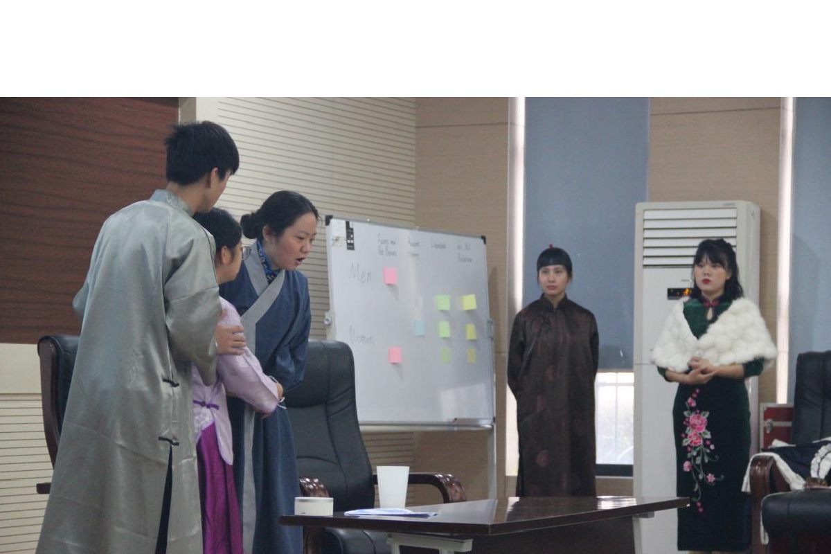 从筹备到公演,2017级的三位班主任老师苏蕊、张敏、田慧芳及项目负责人海燕老师多次探讨并最终形成小剧场方案。12月初,英语小剧场方案向2017级全年级公布,并得到了学生们的积极响应。他们今天的出色表演让前来观摩的各年级同学感受到了他们对英语剧表演的热情,也看到他们在学业之余付出的努力,如成立剧组、遴选剧本、改编剧本、筹借服装、制作道具、排练对白、练习走位等等。
