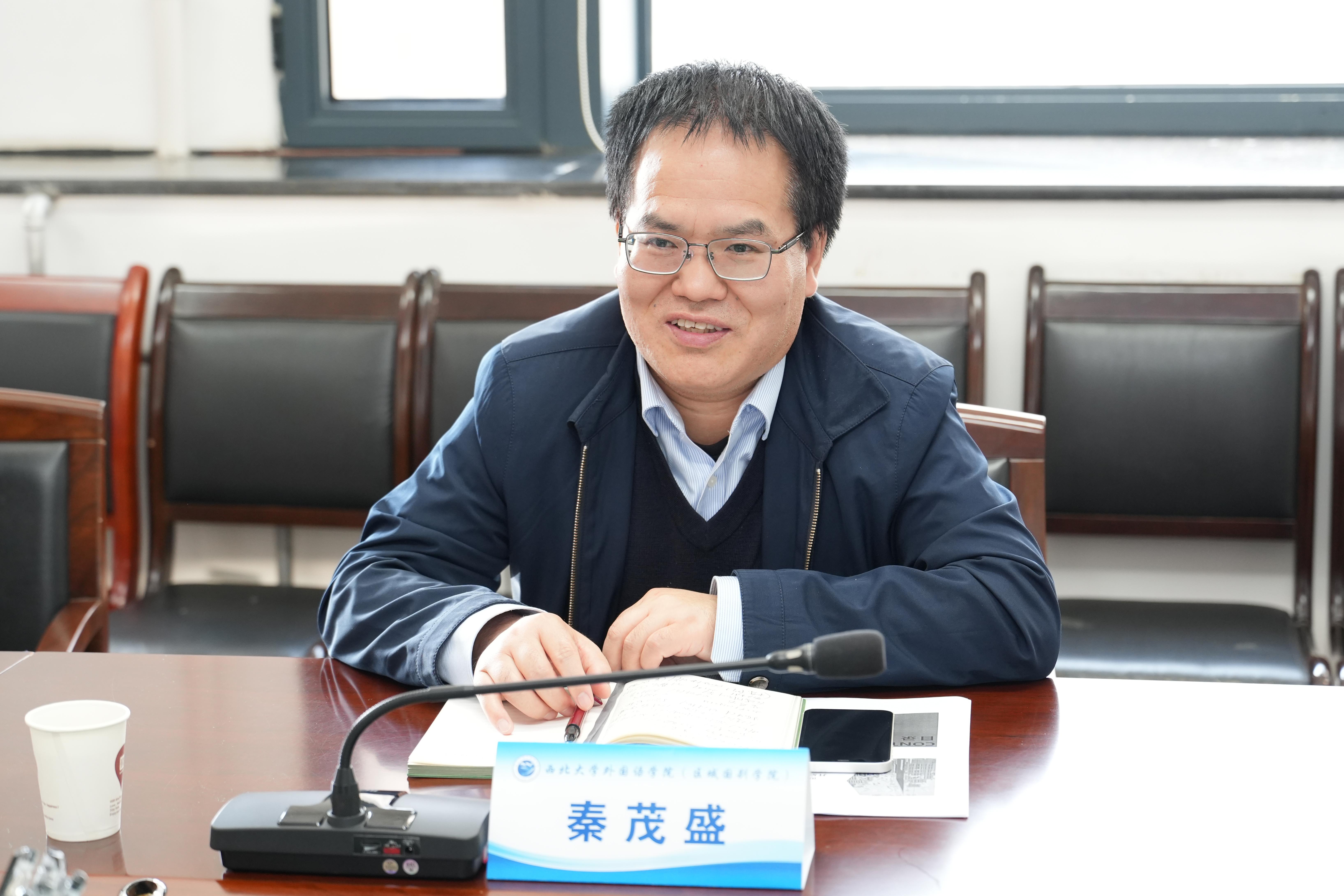 在座谈中,秦茂盛副总编辑回顾了西安交通大学出版社的历史沿革、业务范围,阐明了以服务教师学术出版为核心的办社理念。他详细介绍了出版社在外语类学术著作和精品教材方面的成果与经验,并表达了与外国语学院携手推进外语学术交流、助力教育发展、推动中国学术“走出去”的合作愿景。